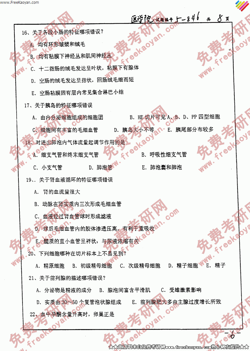 南京大学2006年考研真题-组织胚胎学(病理学与生理学)(6)