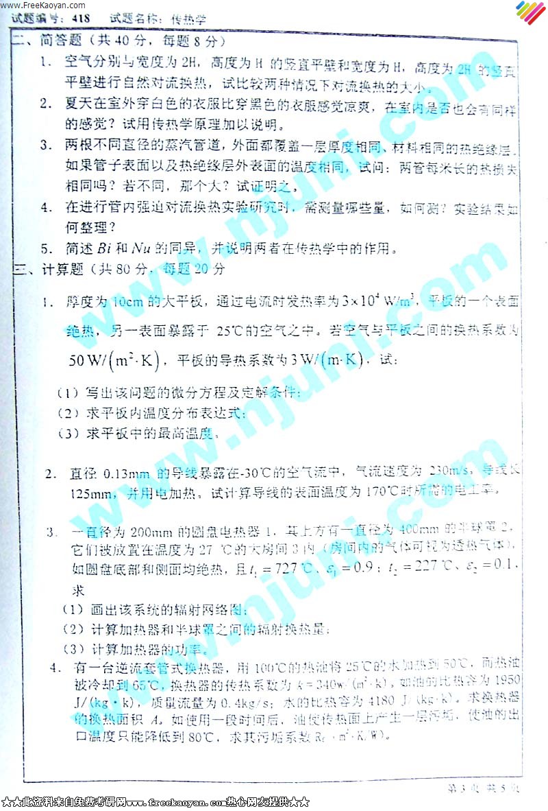专业课考研经验 本站小编 FreeKaoyan 2018-01-22东南大学2002年考研真题-传热学