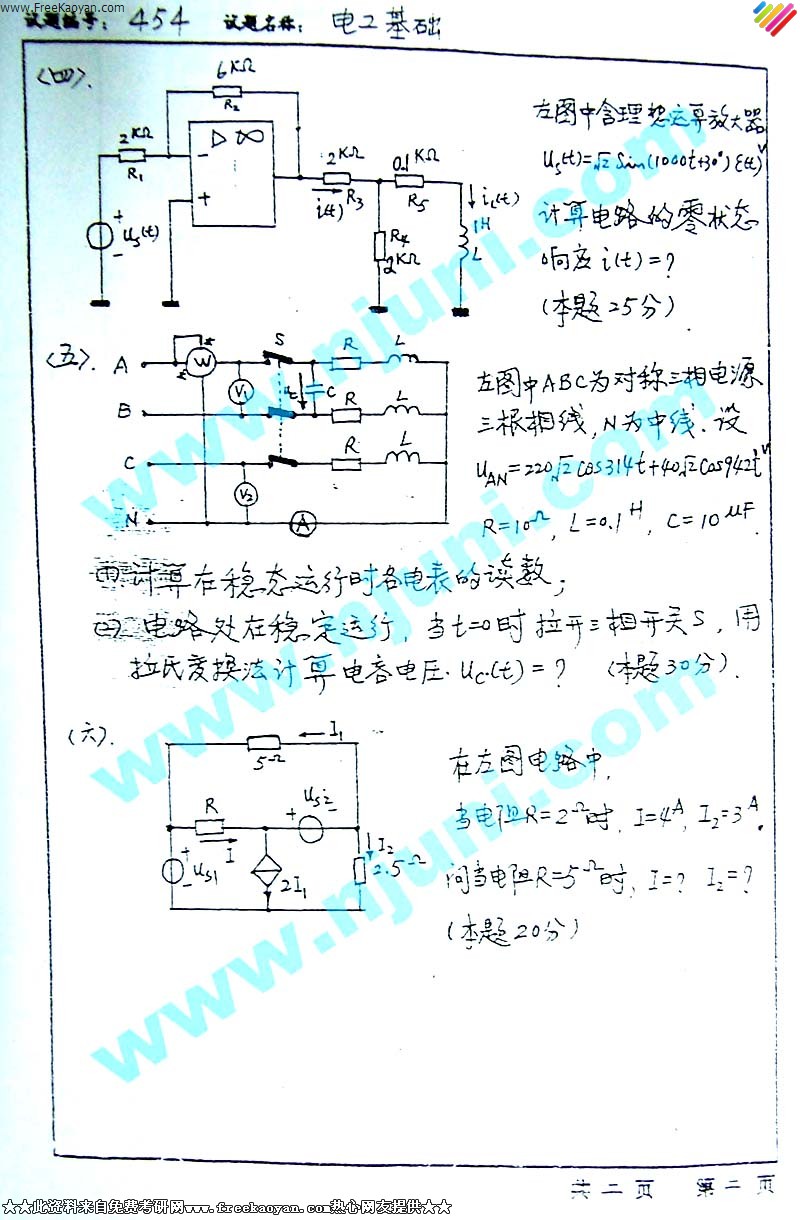 东南大学2003年考研真题-电工基础(2)