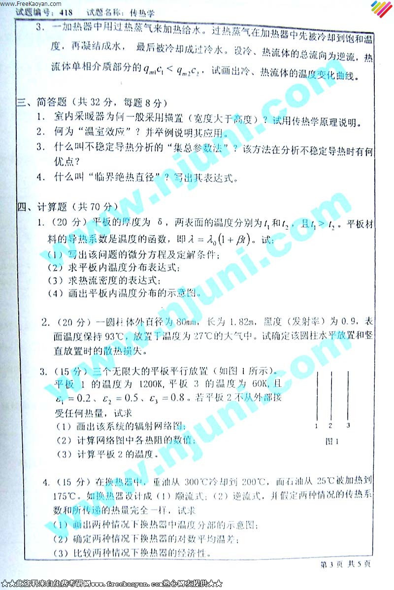 专业课考研经验 本站小编 FreeKaoyan 2018-01-22东南大学2003年考研真题-传热学