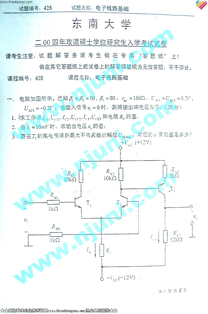 专业课考研经验 本站小编 FreeKaoyan 2018-01-22东南大学2003年考研真题-电子线路基础