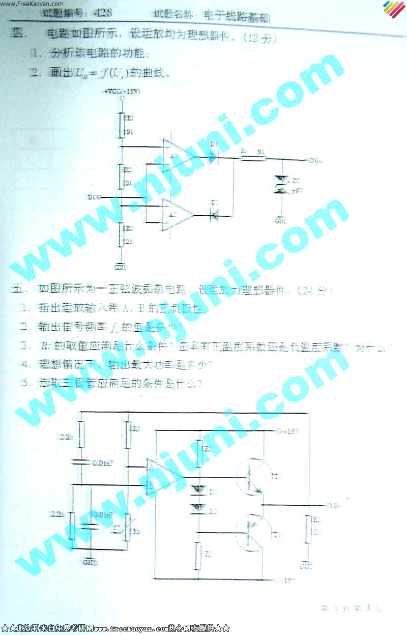 专业课考研经验 本站小编 FreeKaoyan 2018-01-22东南大学2003年考研真题-电子线路基础