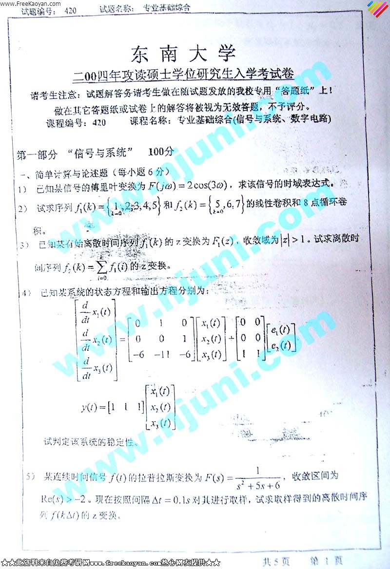 相关话题/专业基础 考研真题 东南大学 数字电路 信号与系统