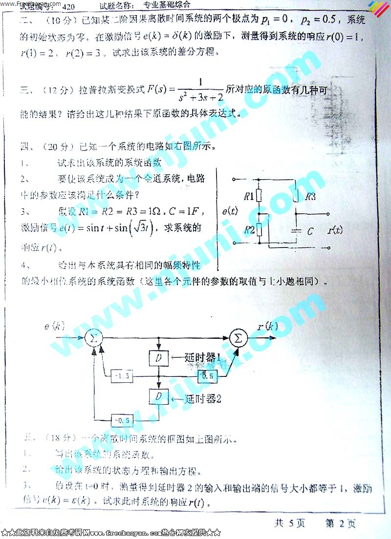 东南大学2004年考研真题-专业基础综合(信号与系统,数字电路)(2)