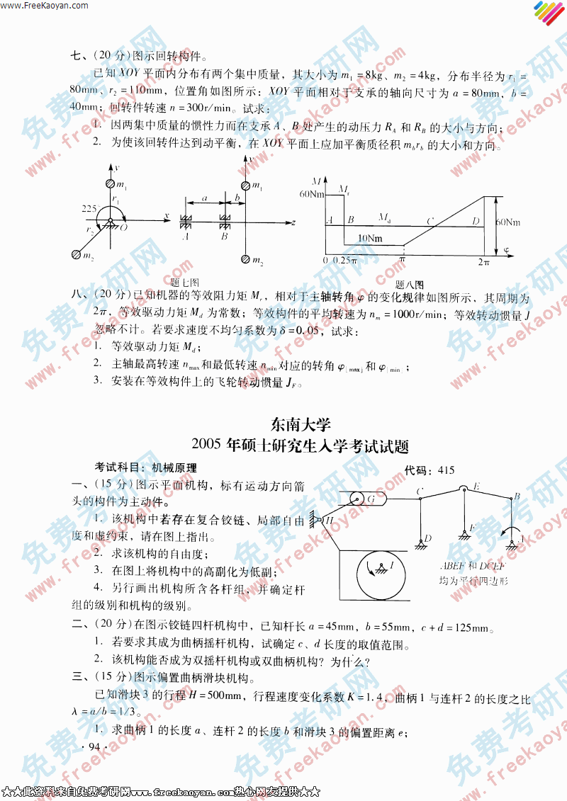 东南大学2005年考研真题-机械原理