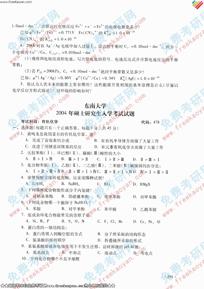 专业课考研经验 本站小编 FreeKaoyan 2018-01-22东南大学2004年考研真题-电子线路基础