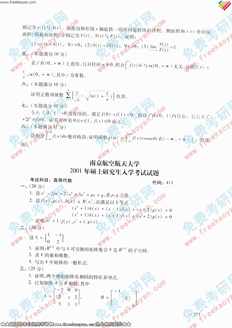 专业课考研经验 本站小编 FreeKaoyan 2018-01-22东南大学2005年考研真题-高等代数