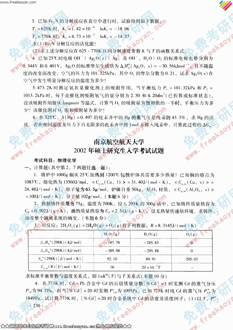 相关话题/东南大学 考研真题 物理化学