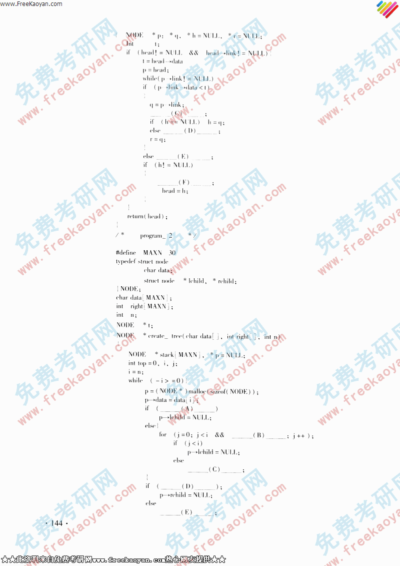 复旦大学2001年考研真题-数据结构与操作系统(4)