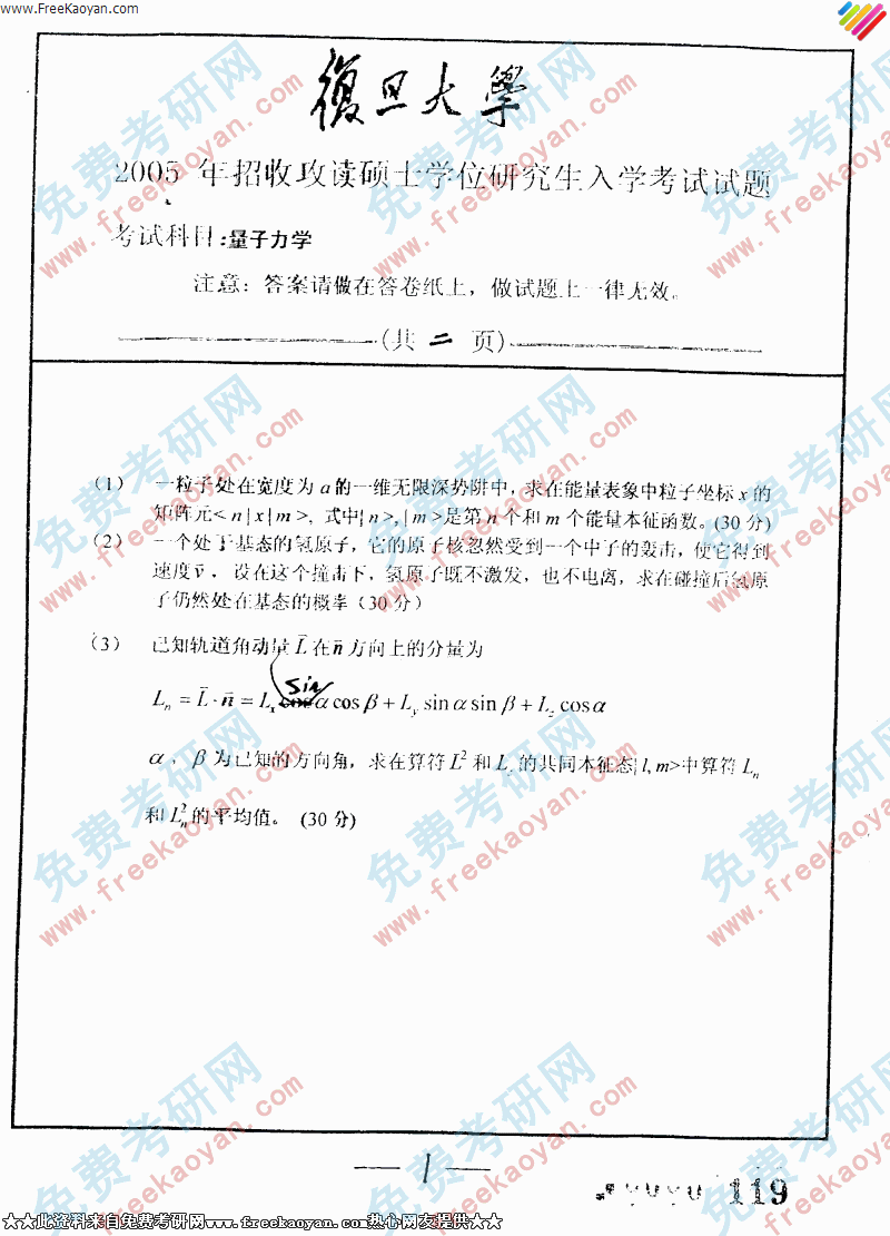 专业课考研经验 本站小编 FreeKaoyan 2018-01-22东南大学2005年考研真题-普通化学