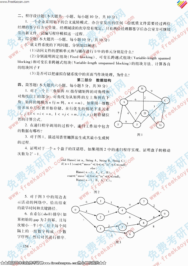 专业课考研经验 本站小编 FreeKaoyan 2018-01-22复旦大学2003年考研真题-数据结构与操作系统