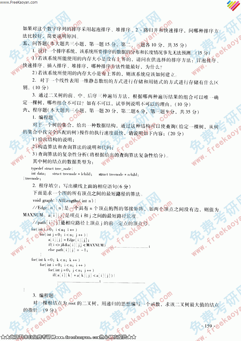 专业课考研经验 本站小编 FreeKaoyan 2018-01-22复旦大学2003年考研真题-数据结构与操作系统