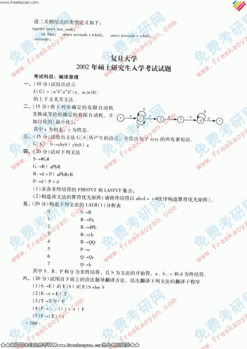 专业课考研经验 本站小编 FreeKaoyan 2018-01-22复旦大学2002年考研真题-数据结构与操作系统