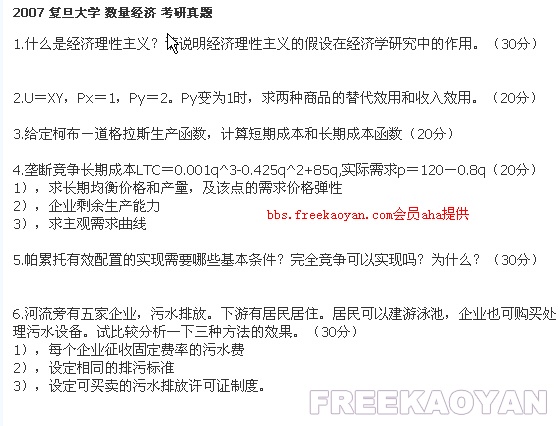 专业课考研经验 本站小编 FreeKaoyan 2018-01-22复旦大学2005年考研真题-经济学综合基础
