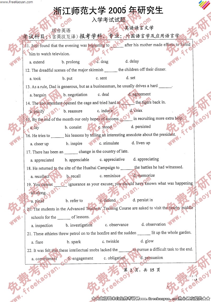 浙江师范大学2005年考研真题-综合英语(2)