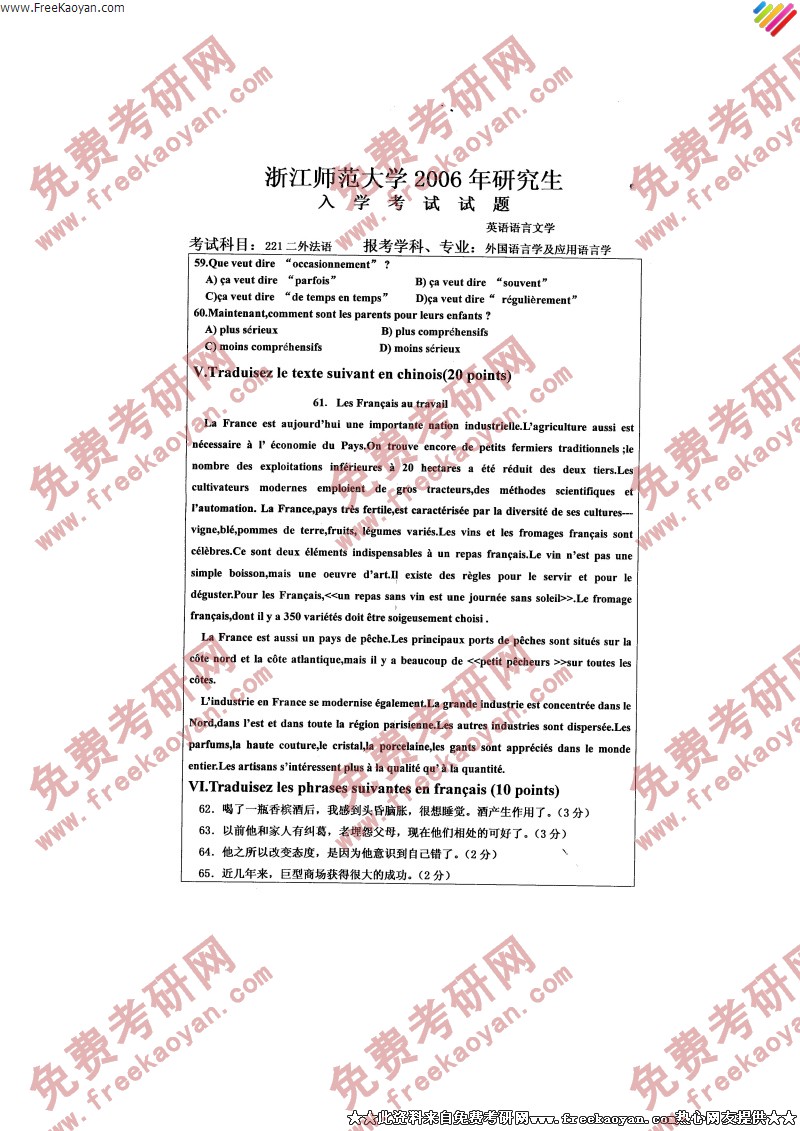 相关话题/浙江师范大学 考研真题 法语