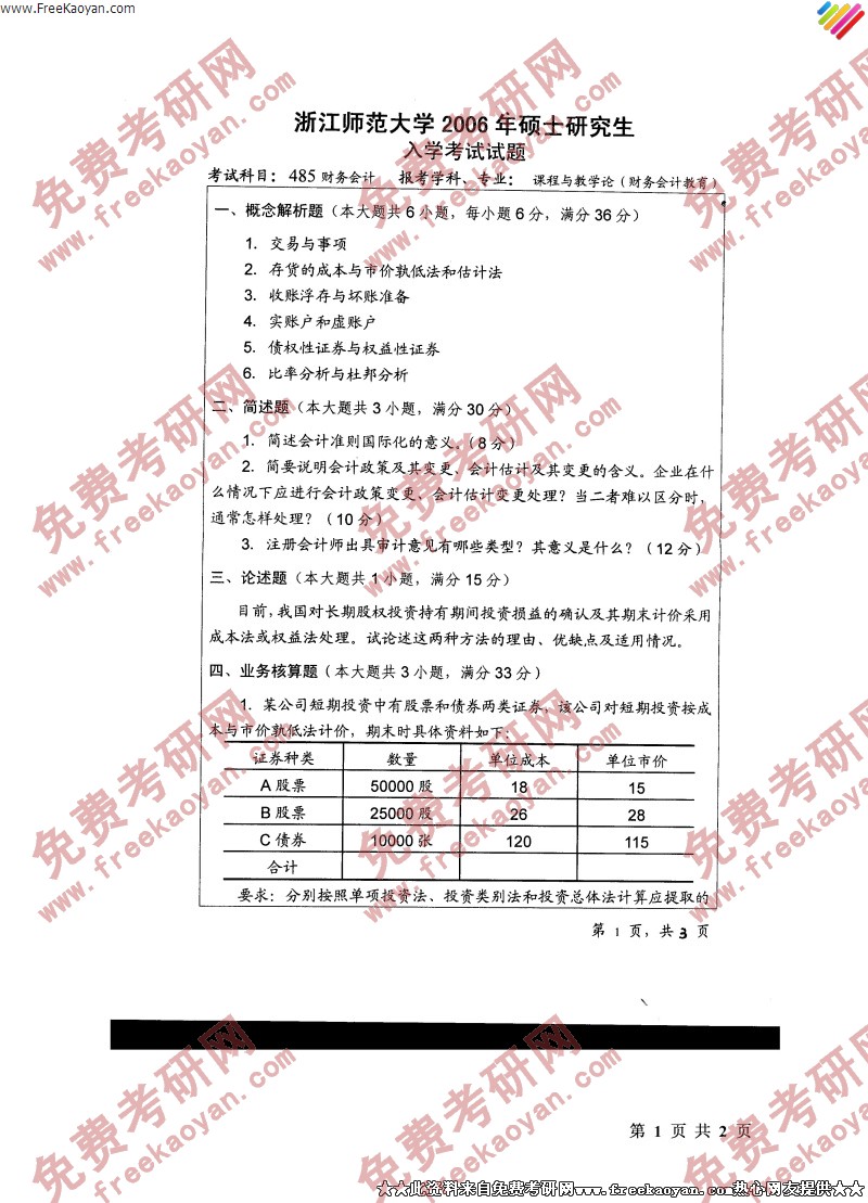 浙江师范大学2006年考研真题-财务会计