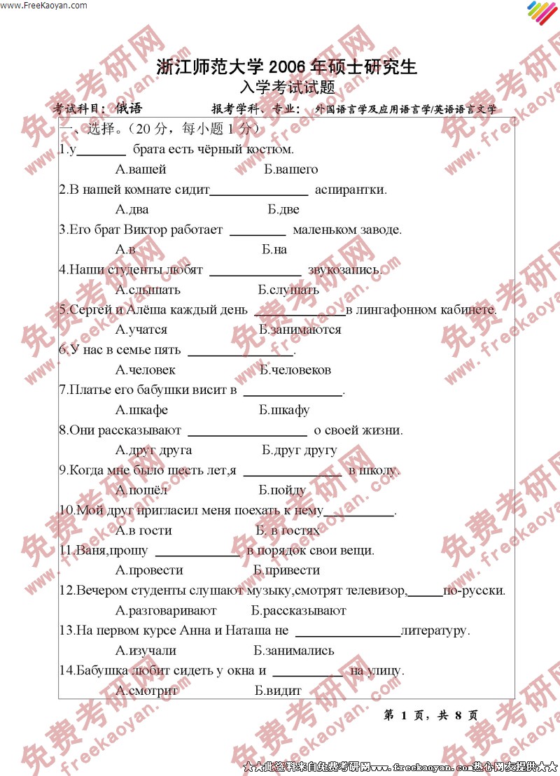 专业课考研经验 本站小编 FreeKaoyan 2018-01-22浙江师范大学2006年考研真题-二外法语
