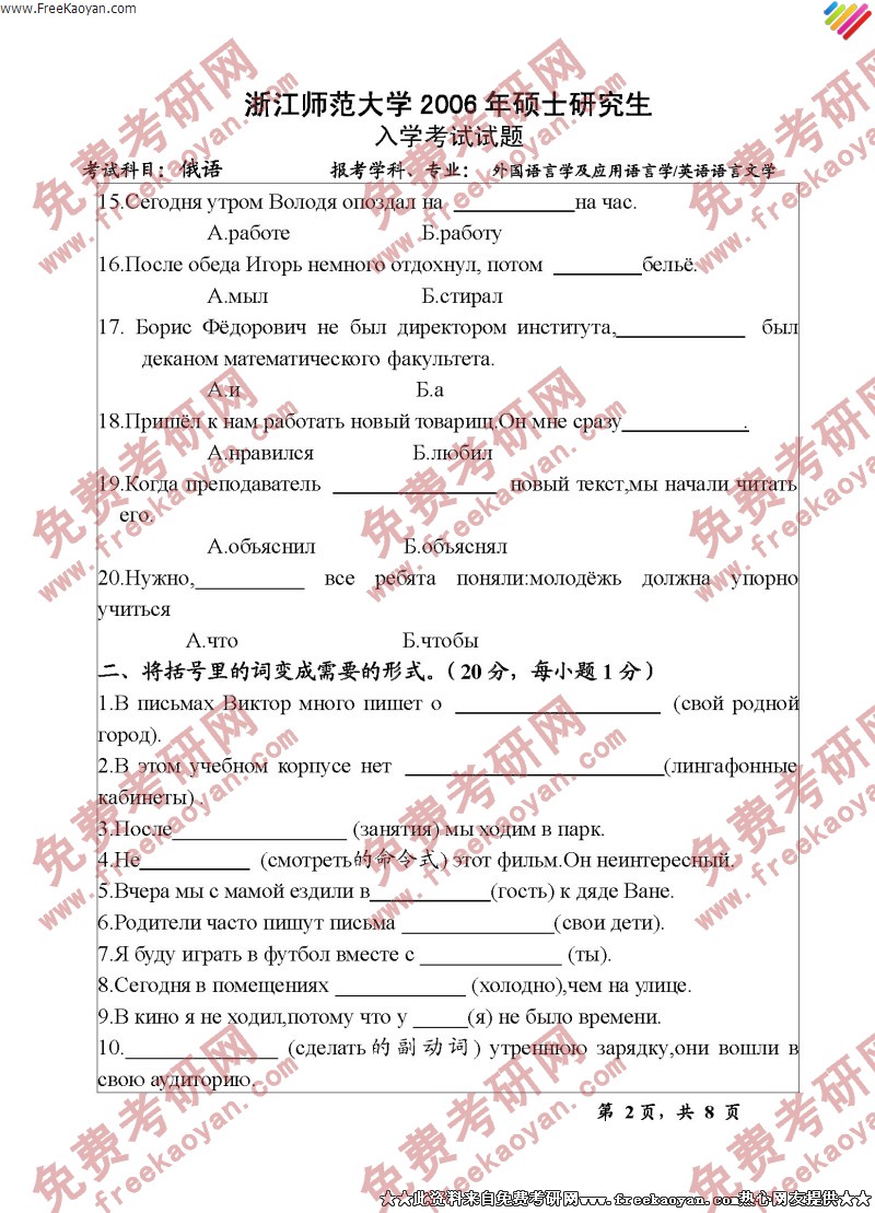 专业课考研经验 本站小编 FreeKaoyan 2018-01-22浙江师范大学2006年考研真题-二外法语
