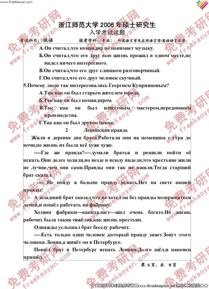 专业课考研经验 本站小编 FreeKaoyan 2018-01-22浙江师范大学2005年考研真题-综合英语