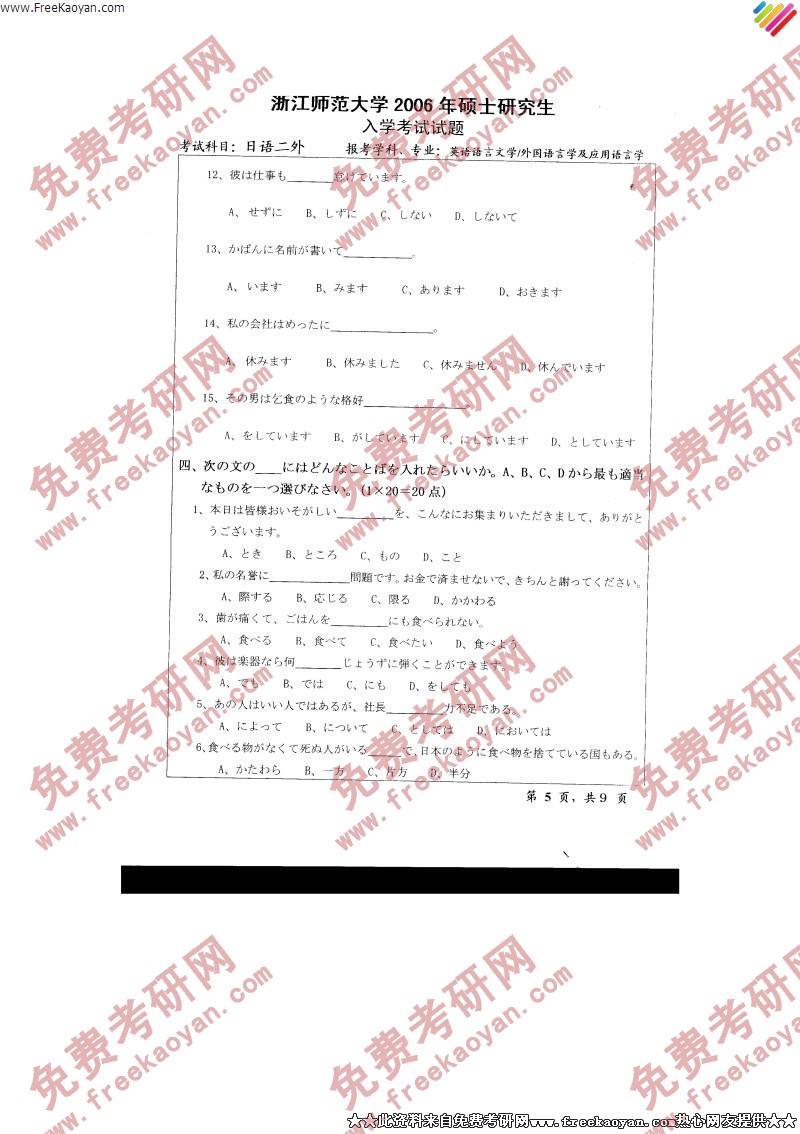 浙江师范大学2006年考研真题-二外日语(5)