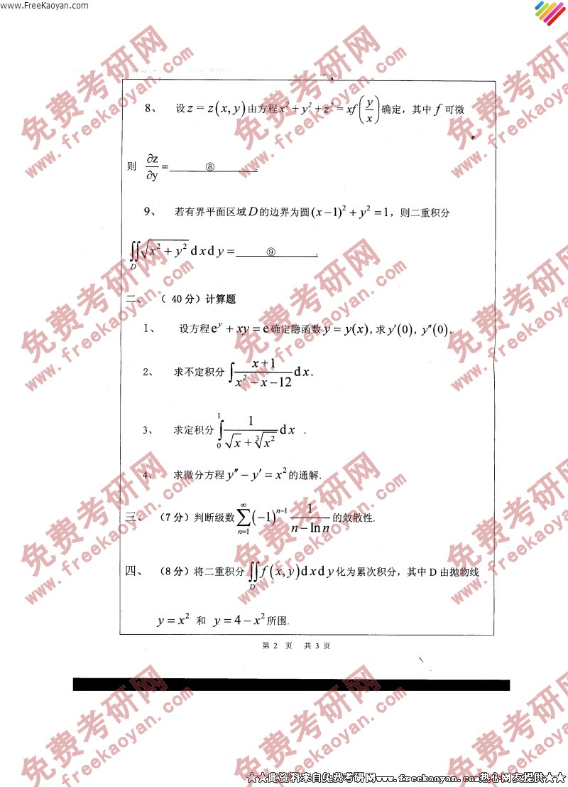 浙江师范大学2006年考研真题-高等数学(2)