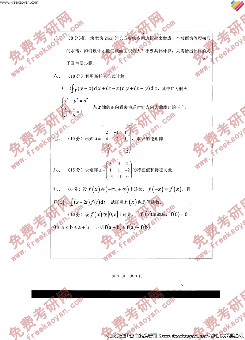 浙江师范大学2006年考研真题-高等数学(3)