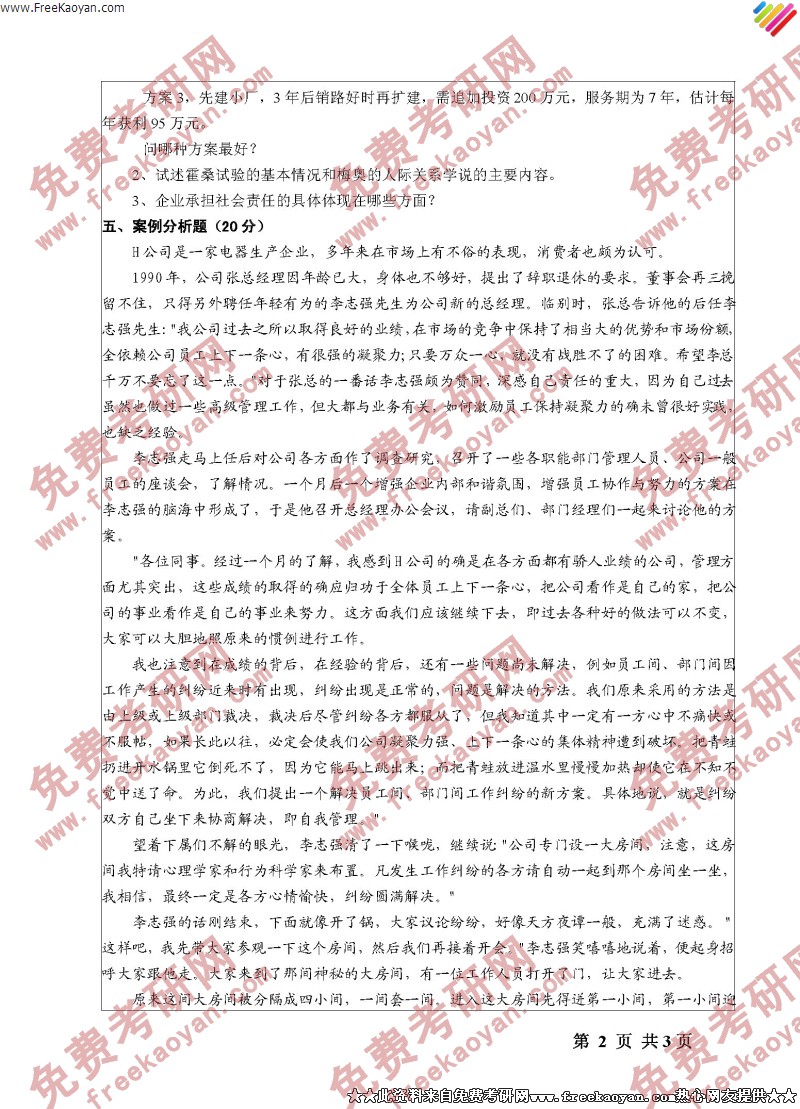 专业课考研经验 本站小编 FreeKaoyan 2018-01-22浙江师范大学2006年考研真题-管理学
