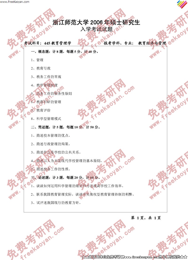 相关话题/考研真题 浙江师范大学 管理学 教育
