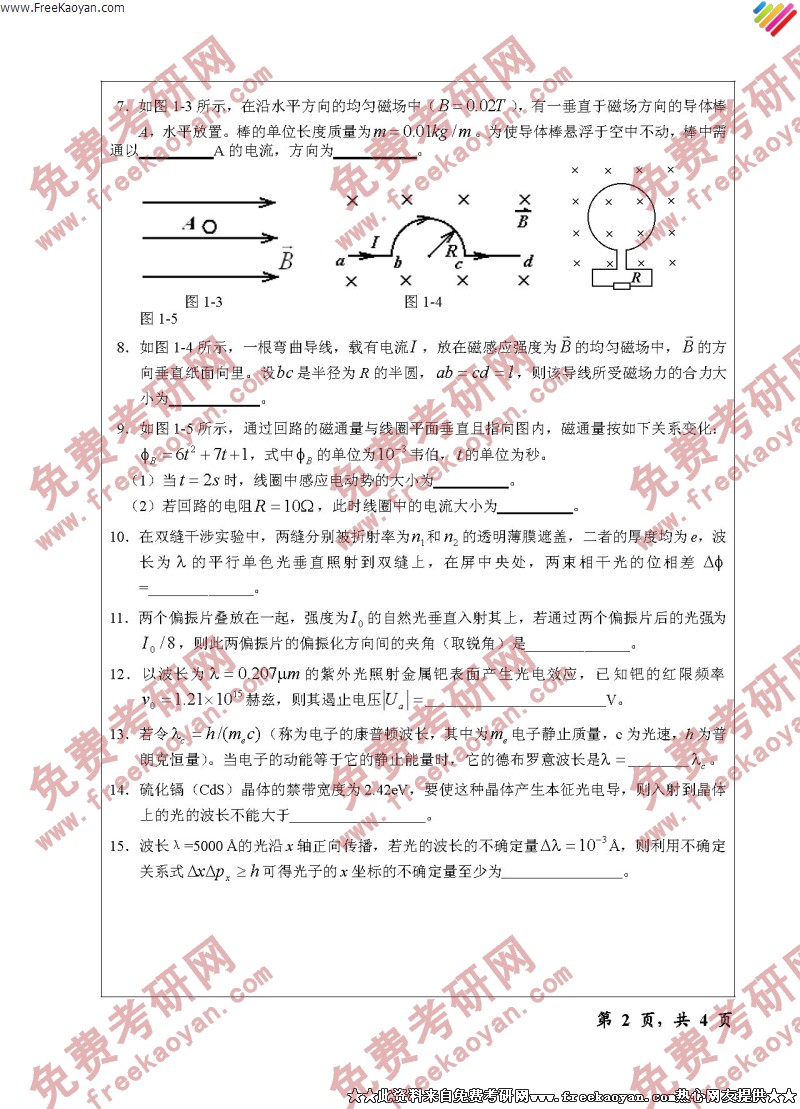 浙江师范大学2006年考研真题-普通物理(2)