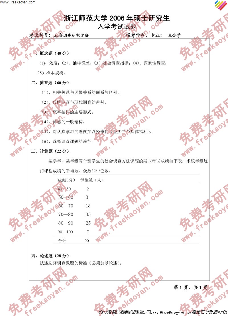 浙江师范大学2006年考研真题-社会调查研究方法
