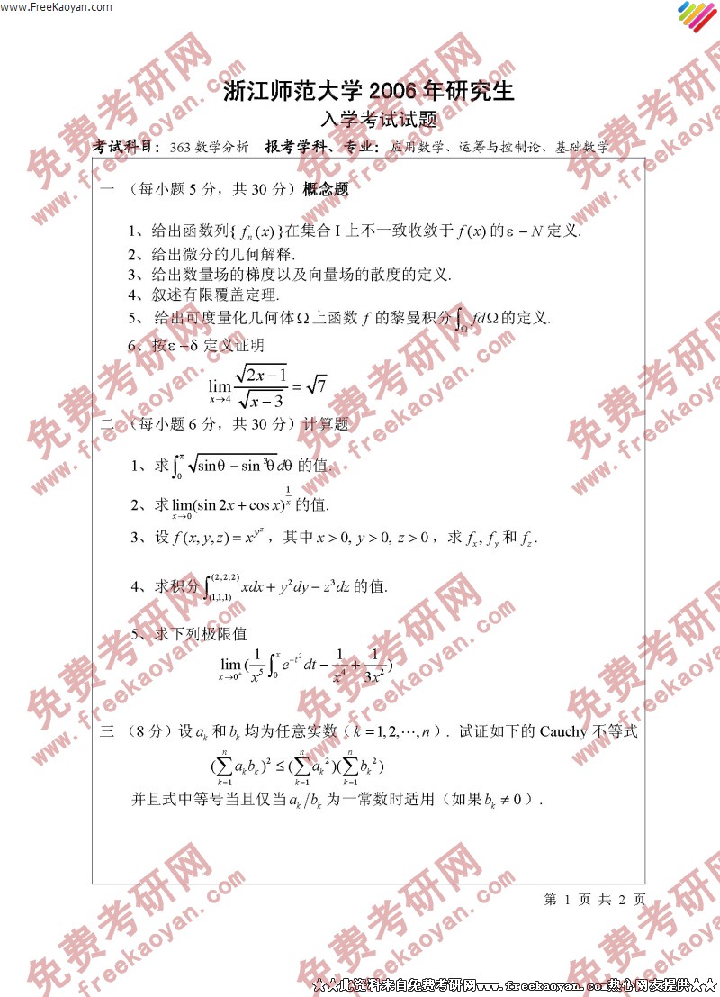 专业课考研经验 本站小编 FreeKaoyan 2018-01-22浙江师范大学2006年考研真题-计算机应用基础