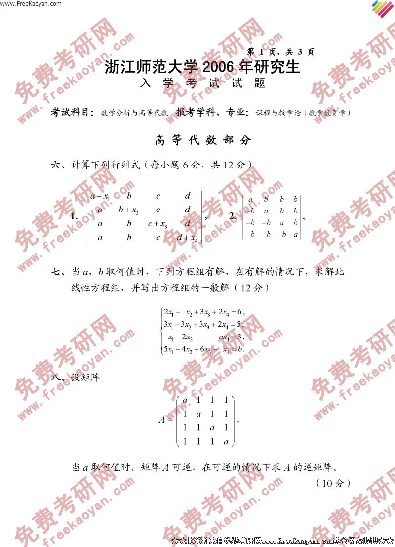 相关话题/考研真题 浙江师范大学 高等代数 数学分析