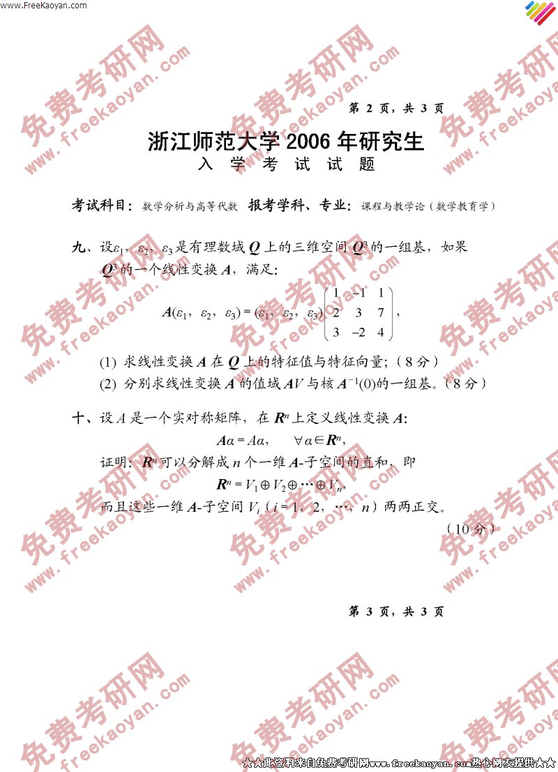浙江师范大学2006年考研真题-数学分析与高等代数(3)