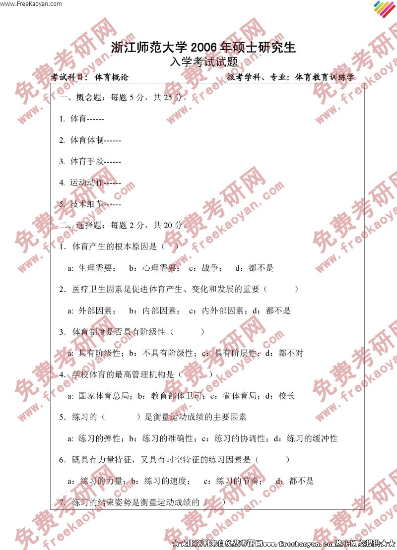 专业课考研经验 本站小编 FreeKaoyan 2018-01-22浙江师范大学2006年考研真题-教育学