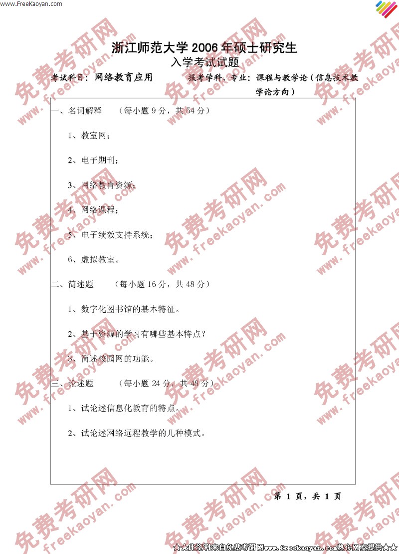 专业课考研经验 本站小编 FreeKaoyan 2018-01-22浙江师范大学2006年考研真题-教育学