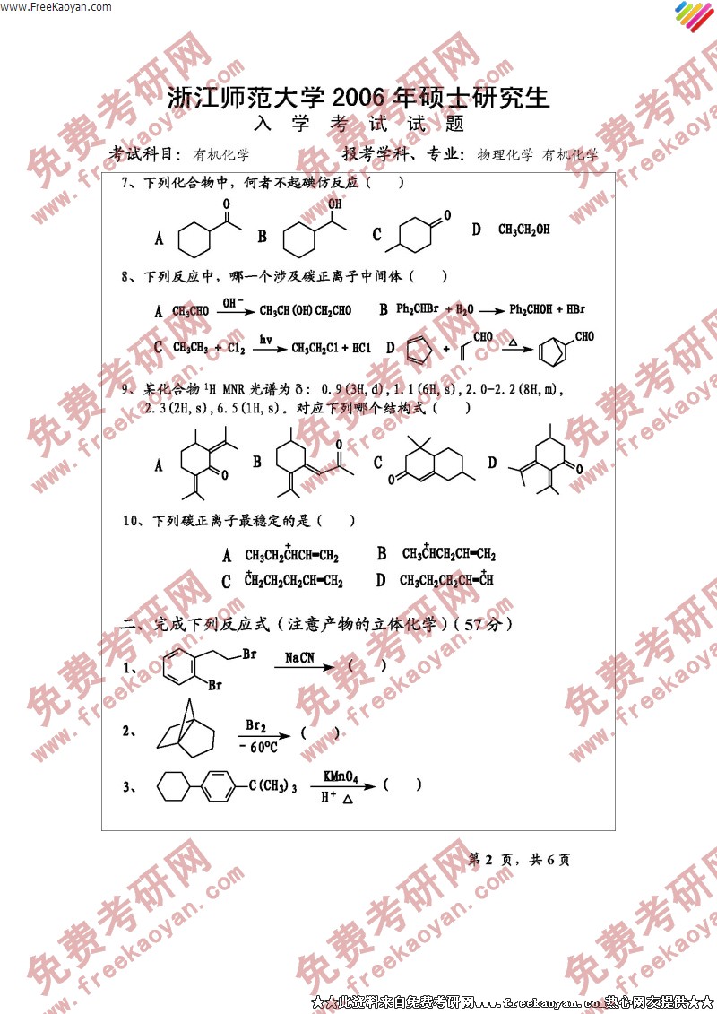 专业课考研经验 本站小编 FreeKaoyan 2018-01-22浙江师范大学2006年考研真题-物理化学