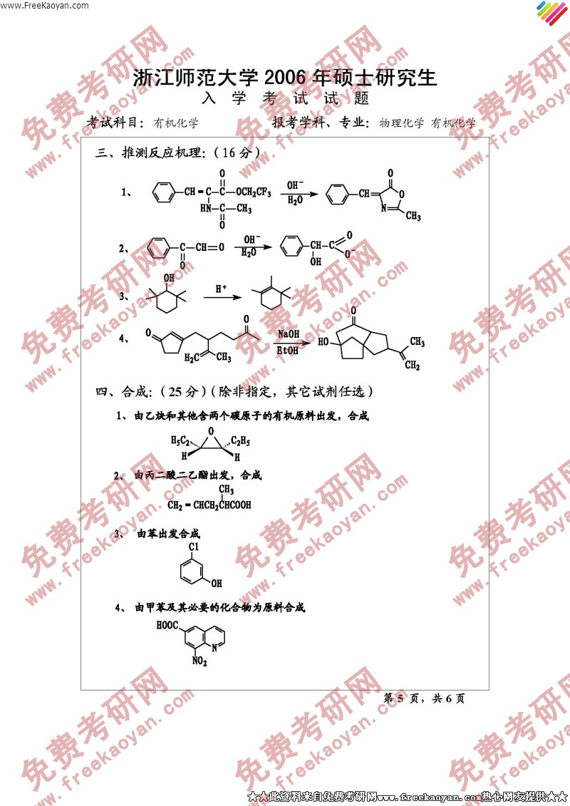专业课考研经验 本站小编 FreeKaoyan 2018-01-22浙江师范大学2006年考研真题-物理化学