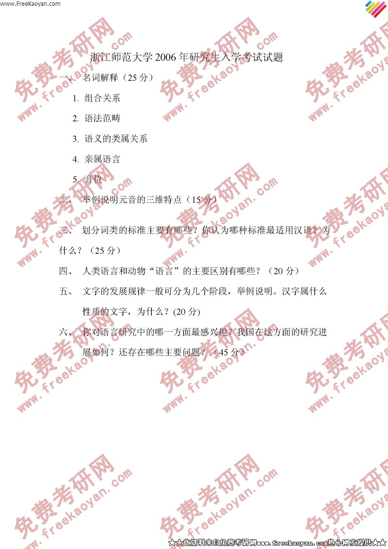 专业课考研经验 本站小编 FreeKaoyan 2018-01-22浙江师范大学2006年考研真题-艺术综合