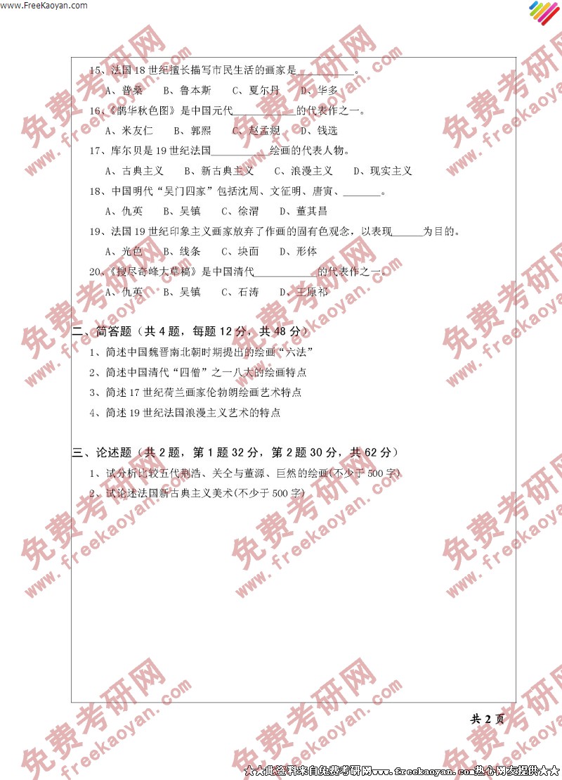 专业课考研经验 本站小编 FreeKaoyan 2018-01-22浙江师范大学2006年考研真题-艺术综合
