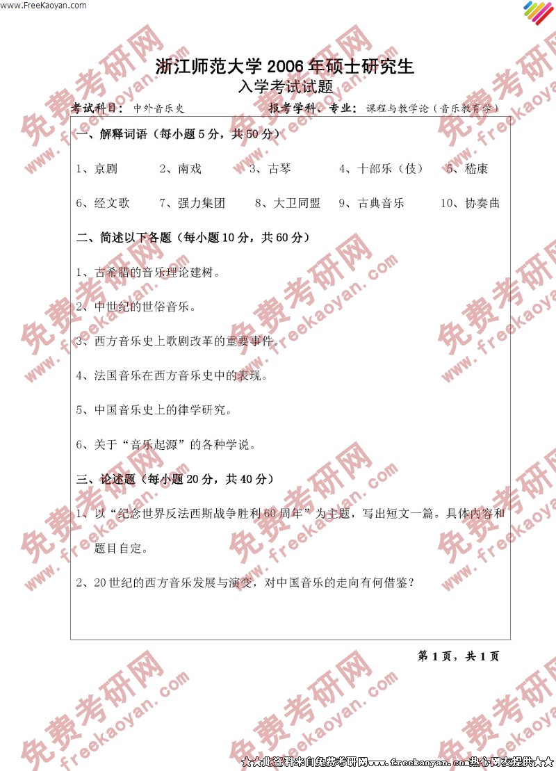 相关话题/考研真题 浙江师范大学 音乐史 中外