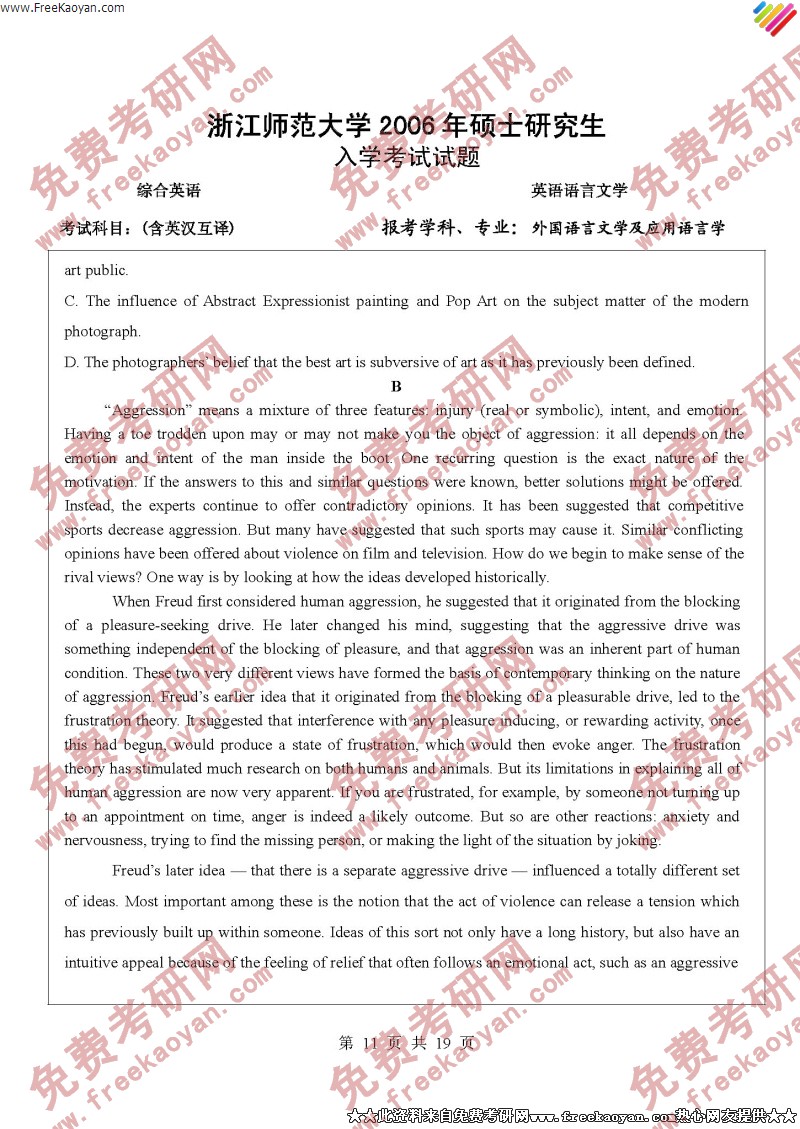 专业课考研经验 本站小编 FreeKaoyan 2018-01-22浙江师范大学2006年考研真题-英语写作