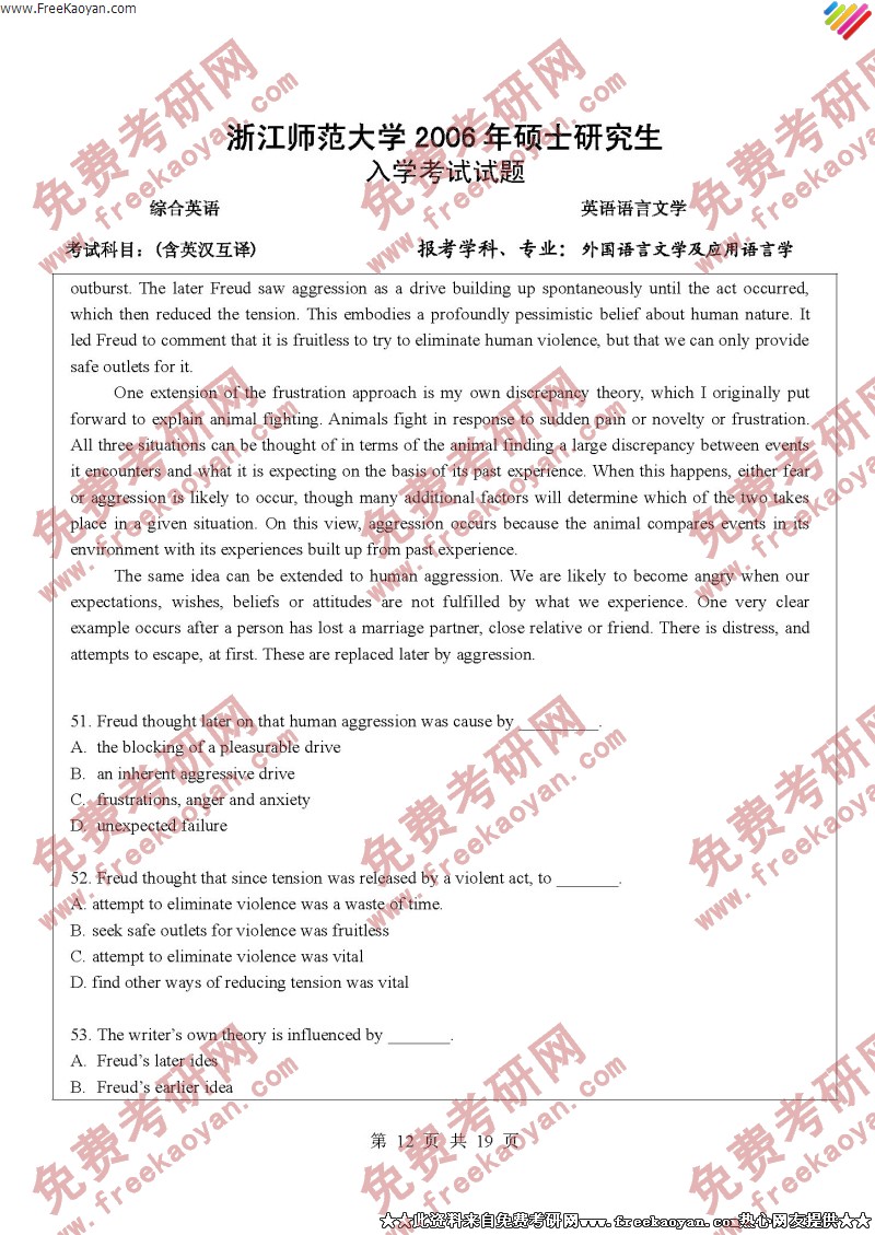 专业课考研经验 本站小编 FreeKaoyan 2018-01-22浙江师范大学2006年考研真题-英语写作