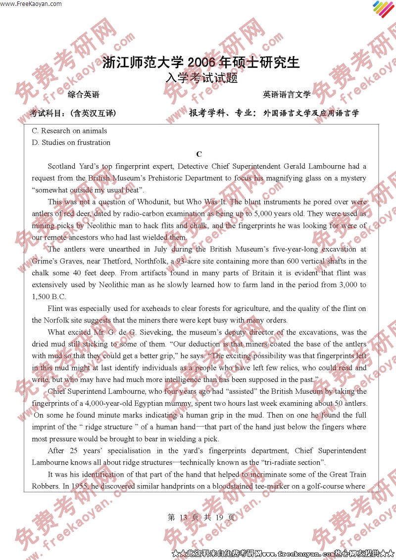 专业课考研经验 本站小编 FreeKaoyan 2018-01-22浙江师范大学2006年考研真题-语言学