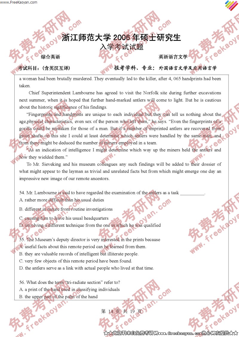 专业课考研经验 本站小编 FreeKaoyan 2018-01-22浙江师范大学2006年考研真题-语言学