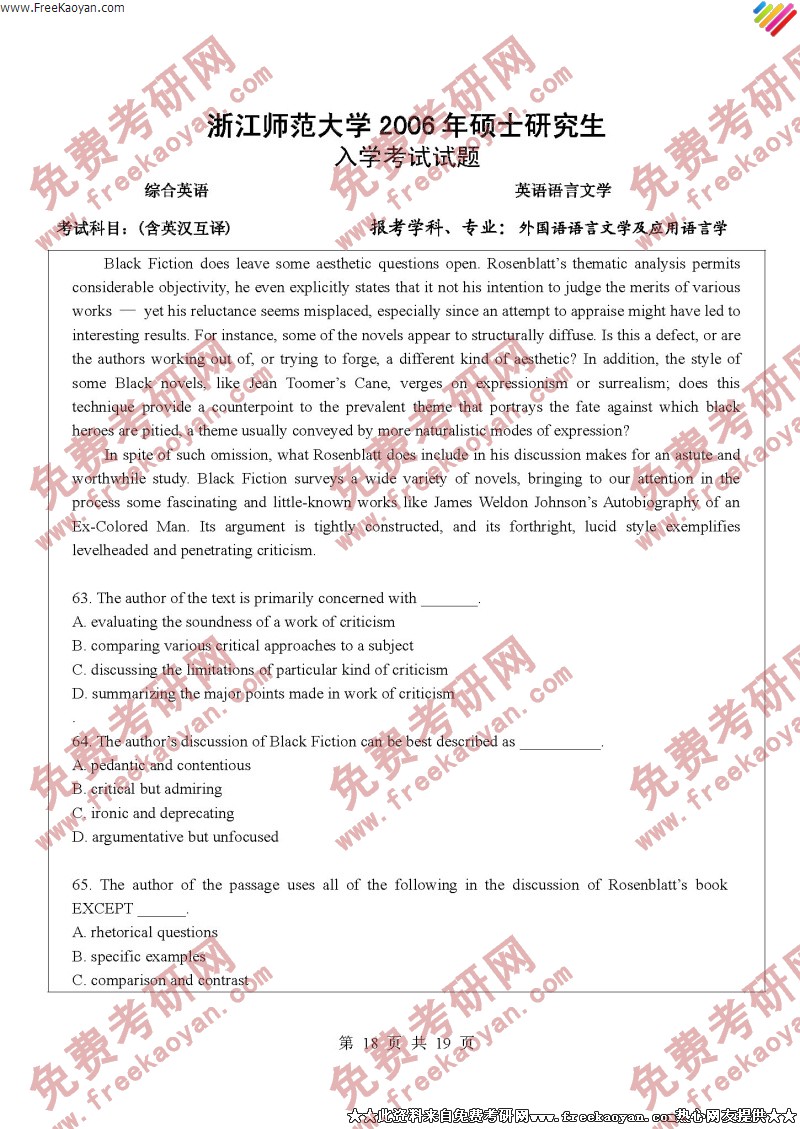 专业课考研经验 本站小编 FreeKaoyan 2018-01-22浙江师范大学2006年考研真题-艺术综合
