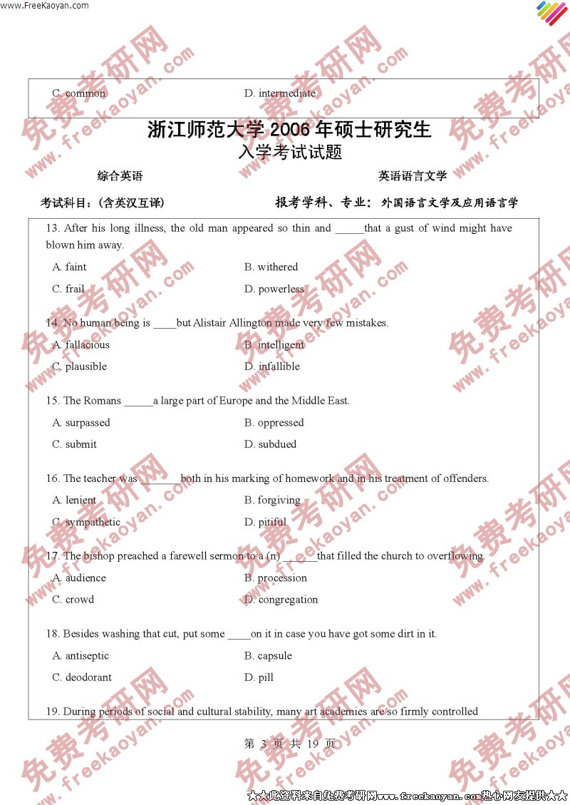 专业课考研经验 本站小编 FreeKaoyan 2018-01-22浙江师范大学2006年考研真题-艺术综合