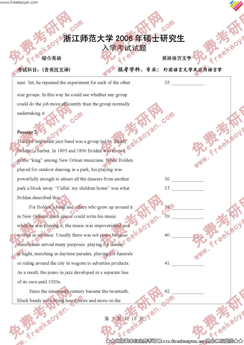专业课考研经验 本站小编 FreeKaoyan 2018-01-22浙江师范大学2006年考研真题-音乐学基础