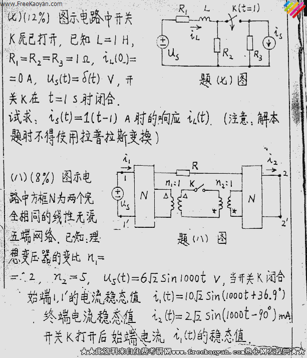 专业课考研经验 本站小编 FreeKaoyan 2018-01-22浙江大学1991年考研真题-电路