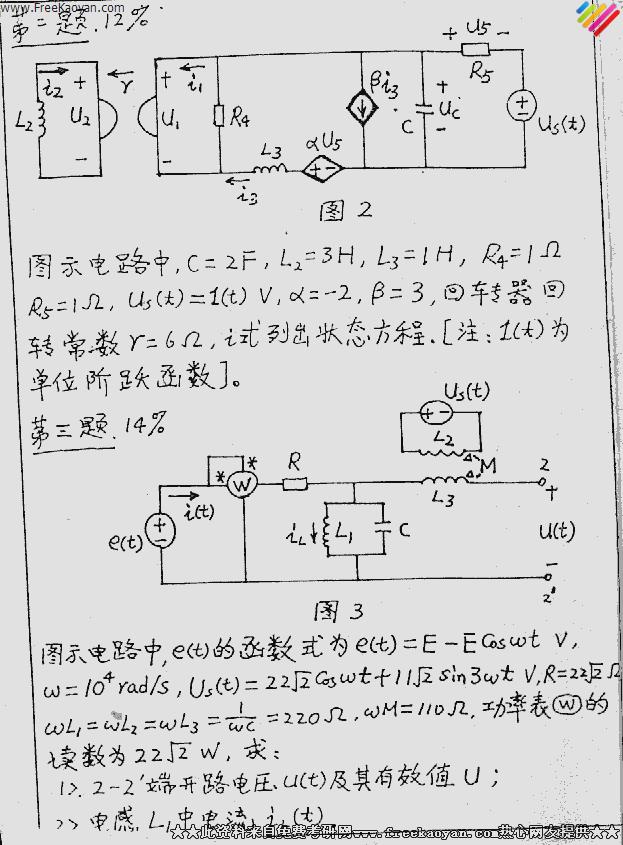 专业课考研经验 本站小编 FreeKaoyan 2018-01-22浙江大学1992年考研真题-电路